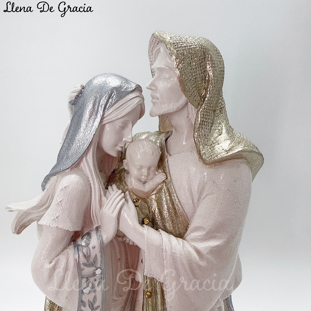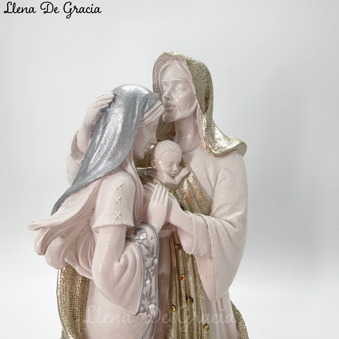 This beautiful image of the Holy Family is finely hand crafted in resin in South America, a piece that stands out for its elegance and devotion. Each figure has been hand-painted, giving it a unique, handcrafted finish full of expression.